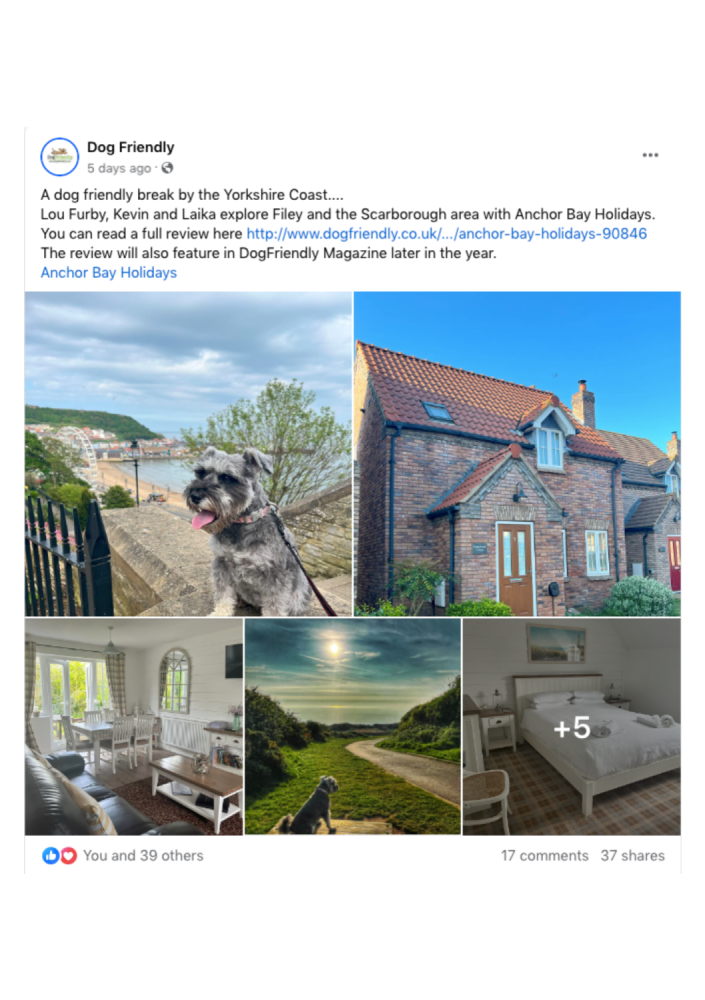 We were thrilled to have hosted Lou Furby, Kevin and Laika from the Dog Friendly Magazine team in our charming Gingerbread Cottage recently. They left us an amazing review, praising the comfort and dog-friendly features of the cottage. Below is the Facebook post mentioning their stay, however they wrote a lovely long review about their stay, and what they did with Laika the mini schnauzer in and around Filey, the read the full review, click here.