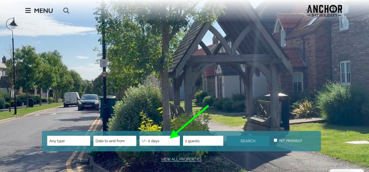 The first step to finding your ideal Anchor Bay property is to think about your dates. If your schedule is fixed, enter your preferred dates into our search tool to see what’s available. Properties with high ratings or premium features will often appear at the top, so it’s a great starting point for inspiration. If your dates are flexible, the search feature on the home page has a +/- number of days, (see below) which will help you to browse around the time you are thinking which opens up a wider array of choices.